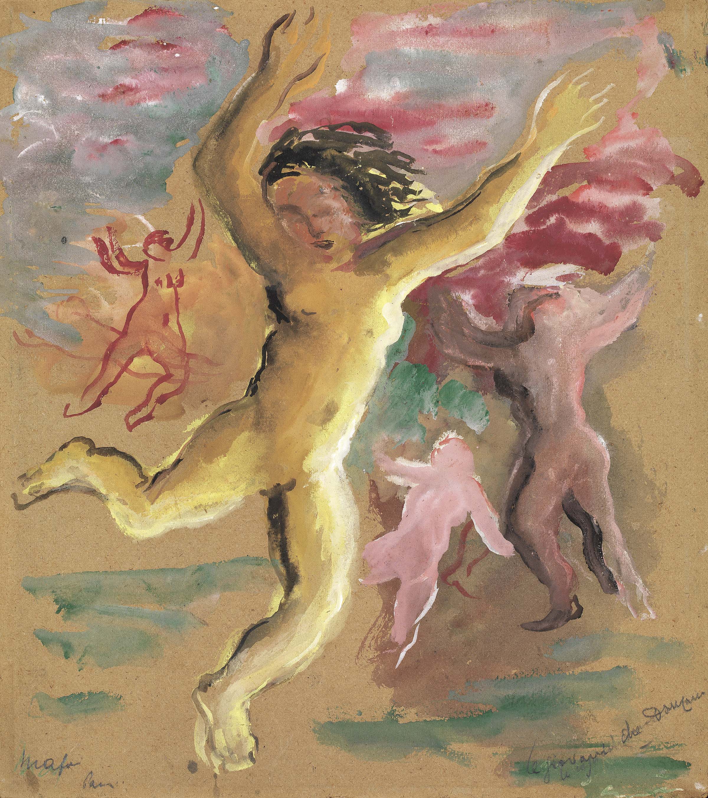 Mario Mafai Roma 1902 - 1965 Le giovani che danzano, 1930 ca. Olio e tecnica mista su cartoncino, cm. 36,6x32 Firma e luogo in basso a sinistra: Mafai / Roma, titolo in basso a destra: Le giovani che danzano. Al verso, su un cartone di supporto: etichetta Gruppo “L’Altana” Milano: etichetta Istituto Nazionale per le Relazioni / Culturali con l’Estero - Roma / Esposizione di pittura moderna italiana a Londra: timbro Galleria del Milione, Milano, con n. 7157. Certificato su foto di Giulia Mafai. Esposizioni Casa Mafai da via Cavour a Parigi (1925-1932), a cura di Fabrizio d’Amico e Marco Goldin, Brescia, Museo di Santa Giulia, 15 gennaio - 20 marzo 2005, cat. p. 78, n. 28.