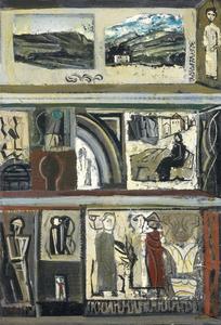 Mario Sironi Sassari 1885 - Milano 1961 Pareti, 1944 Olio su tela, cm. 100x68...