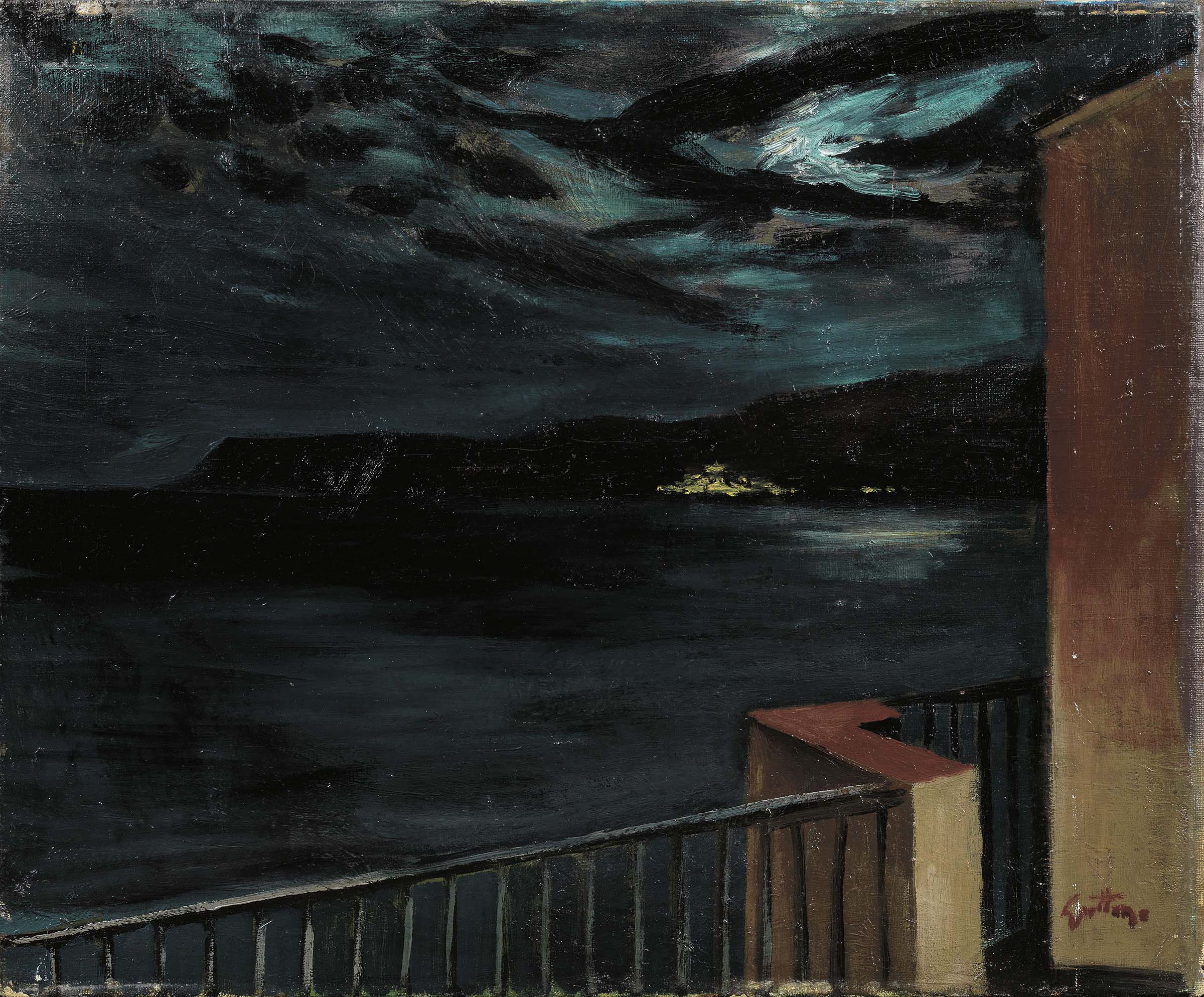 Renato Guttuso Bagheria (Pa) 1912 - Roma 1987 Balcone a Scilla, 1950 Olio su tela, cm. 38x46,5 Firma in basso a destra: Guttuso; scritta e data al verso sulla tela: Notte 10 ag. 50. L’autenticità del dipinto è stata confermata verbalmente da Enrico Crispolti e dagli Archivi Guttuso, Roma, a cura di Fabio Carapezza, presso cui sono depositate le fotografie dell’opera.