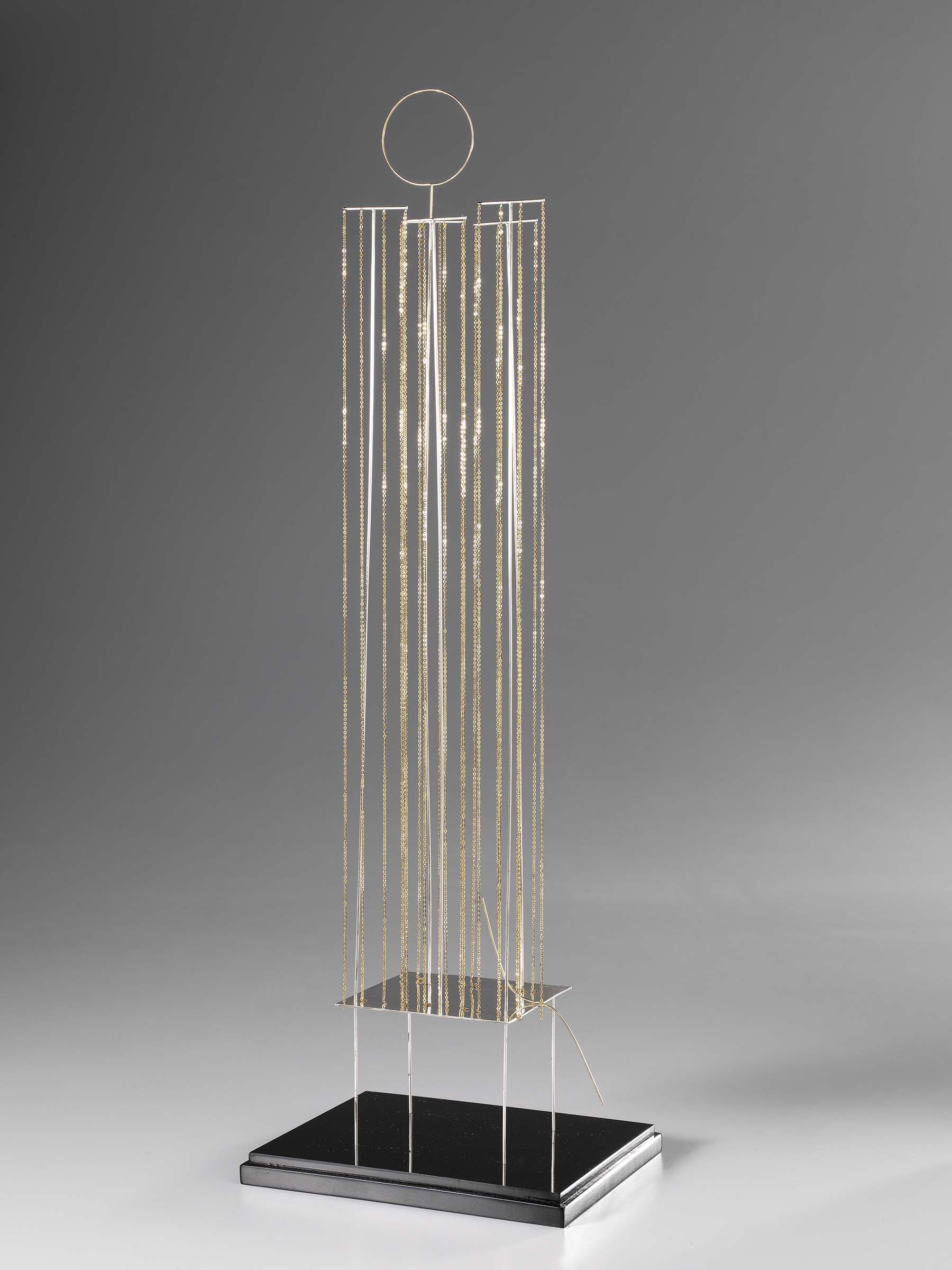Fausto Melotti Rovereto (Tn) 1901 - Milano 1986 Mattinata nel bosco, 1974 Scultura in oro e argento, es. 8/12, cm. 55,5x11,5x8,5 Firma e tiratura a punzone sulla base: Melotti / 8/12. Foto autenticata dall’artista, Milano, 31/1/1974. Tiratura di 12 esemplari più 1 p.a. Bibliografia Germano Celant, Melotti. Catalogo generale tomo secondo, sculture 1973-1986 e bassorilievi, Electa, Milano, 1994, p. 398, n. 1974 36.