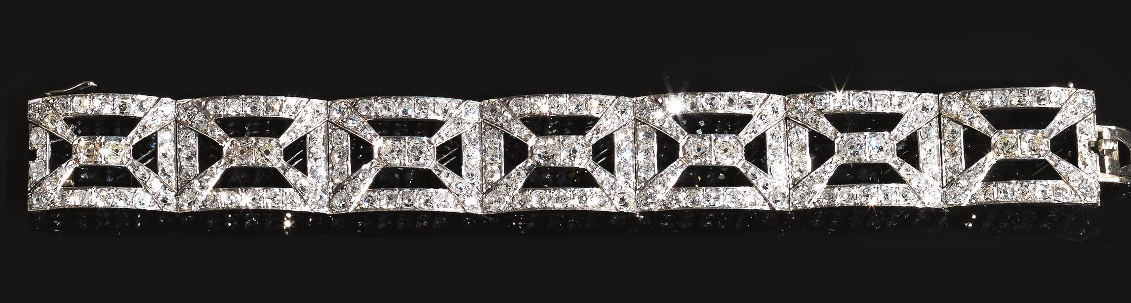 formato da una serie di formelle rettangolari traforate interamente decorate da brillanti taglio vecchio, g 40