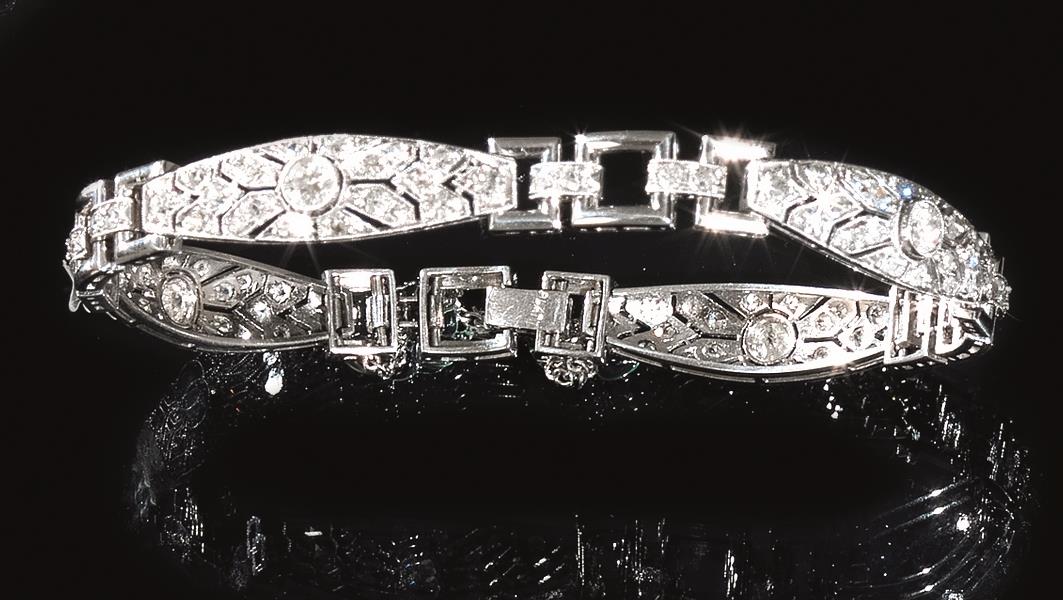 Bracciale in platino e diamantilavorato a maglie traforate di forma sagomata...