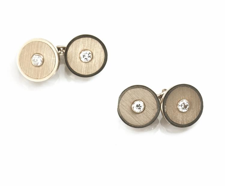 Lotto 24 | Paio di gemelli in oro bianco e diamanticiascuno modellato a bottone...