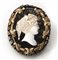 Due spille in oro a basso titolo, argento, granati e agataun cammeo di forma...