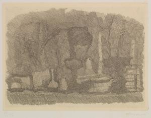 Giorgio Morandi Bologna 1890 - 1964 Natura morta di vasi, bottiglie ecc. su un tavolo, 1929 ca. Acquaforte su rame, es. 60/62, cm. 14,5x19,9 (lastra), cm. 25,5x32,8 (carta) Firma a matita sul margine in basso a destra: Morandi, tiratura in basso a sinistra: 60/62, in basso a destra timbro a secco Libreria Prandi, Reggio E. Primo stato su due. Tiratura di 62 esemplari numerati su carta India incollata e 3 prove di stampa. Bibliografia: Lamberto Vitali, L'opera grafica di Giorgio Morandi, Giulio Einaudi Editore, Torino, 1964, n. 67; Michele Cordaro, Morandi incisioni. Catalogo Generale, Edizioni Electa, Milano, 1991, p. 74, n. 1929 14.