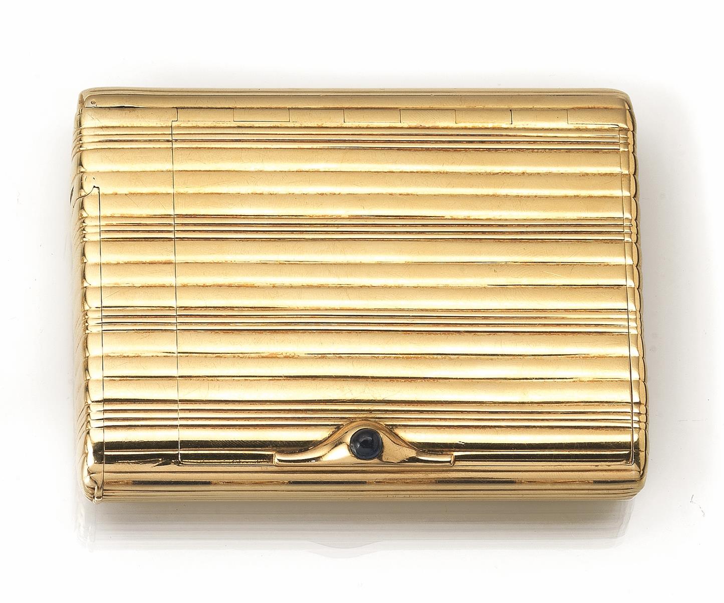 Portasigarette, anni 1950-'55,Torrini, in oro giallo e zaffirodi forma...
