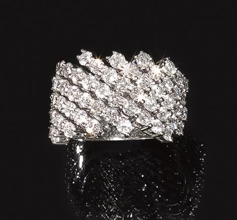 Anello in oro bianco e diamantela parte anteriore realizzata come una fascia...