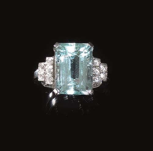 Anello in oro bianco, acquamarina e diamantial centro un'acquamarina...