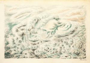 Alberto Savinio Atene 1891 - Roma 1952 L'uccello di fuoco. Bozzetto scena Quadro I, 1949 Matita, acquerello e tempera su carta, cm. 48,7x70 Firma in basso a destra: Savinio. Esposizioni: Sogni di carta. Dipinti, disegni e incisioni dei maestri del `900, Riccione, Galleria d'arte moderna e con- temporanea Villa Franceschi, 25 giugno - 11 settembre 2011, cat. p. 34, illustrato a colori. Bibliografia: Pia Vivarelli, Alberto Savinio. Catalogo gene- rale, Electa, Milano, 1996, p. 384, n. 1949 26.
