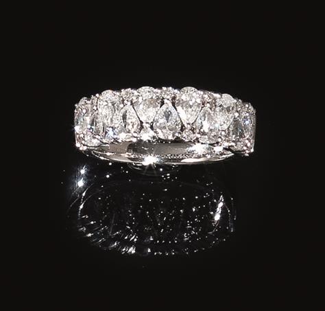 Anello in oro bianco e diamantila parte anteriore decorata da una linea di...