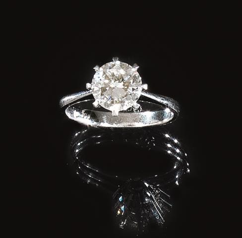 Anello in oro bianco e diamantecon brillante di ct 2 circa montato entro otto...