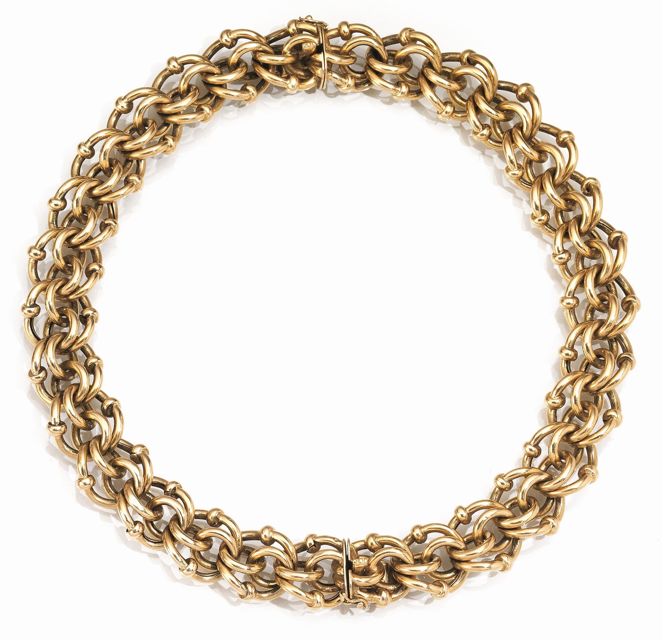 Coppia di bracciali in oro giallounibili a formare una collana, ciascuno...