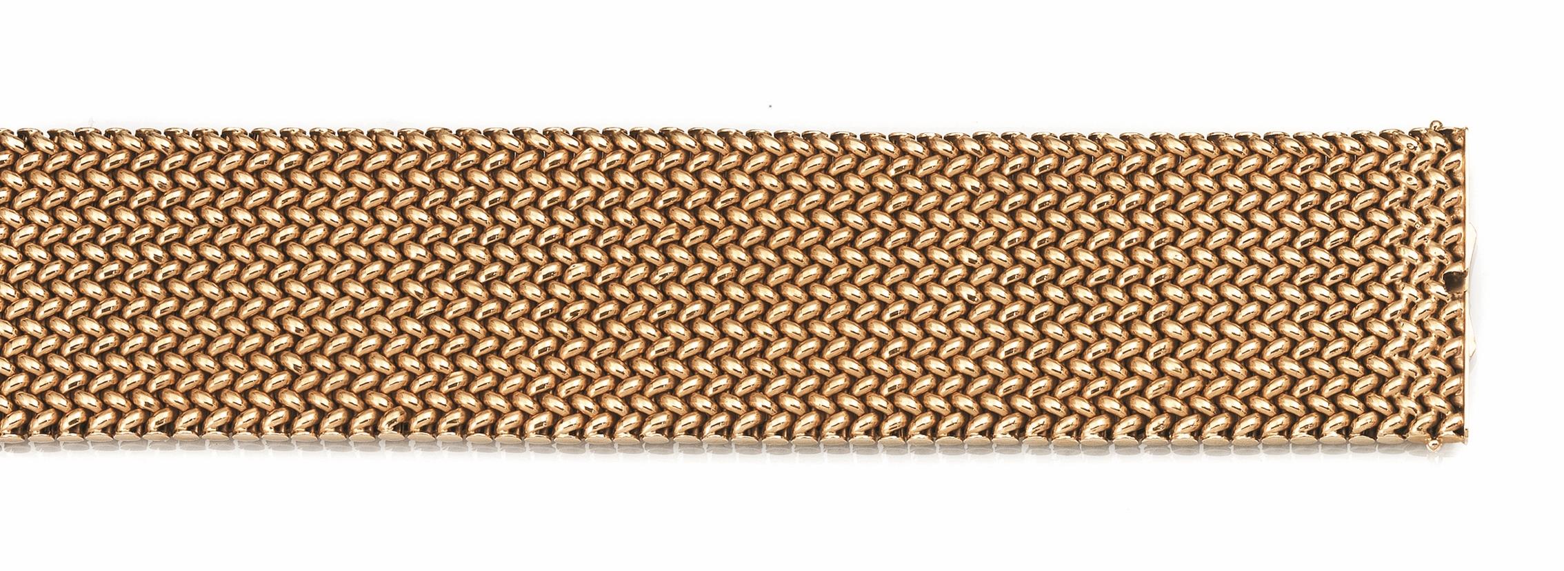 Bracciale in oro giallo realizzato a fascia alta in oro rosa a chicco di...