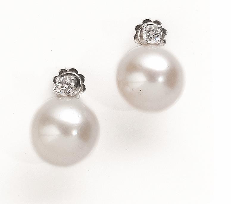 ciascuno realizzato con una perla australiana diam. mm 14 sormontata da un