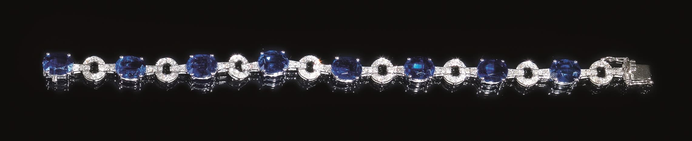 formato da otto cianiti ovali per ct 17 circa poste in linea ed intercalate da otto anelli decorati in brillanti per ct 0.90 circa, punzone 750, g 15