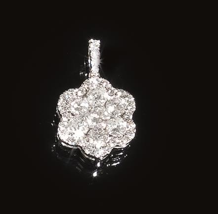Pendente in oro bianco e diamanti disegnato come una corolla polilobata...