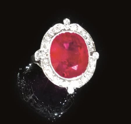 con padparadscha ovale entro cornice di brillanti con certificato HGT