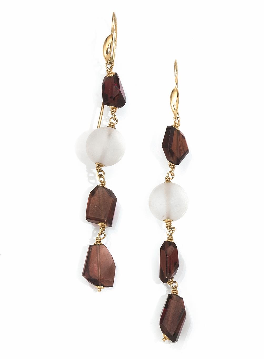 Demi parure in oro giallo, cristallo di rocca e granati, composta di collana e paio di orecchini pendenti