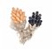 Spilla in oro bianco, corallo, zaffiri e diamanti