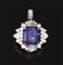 Pendente in oro bianco 14 kt, tanzanite e diamanti con tanzanite quadrata...
