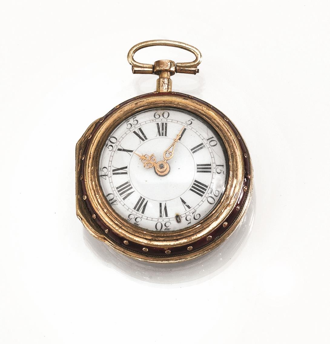 OROLOGIO DA TASCA, AMATO, NAPOLI 1750 CIRCA, IN OTTONE E AGATA