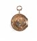 Cassa esterna in oro dei tre colori sbalzata e cesellata a scenetta di genere con figure entro riserva ovale fra ghirlande fogliacee, lunetta decorata da una linea di rose di diamante, quadrante in smalto con numeri romani per le ore intercalati da rose di diamante entro castoni a corolla, anello peroferico con minuti in numeri arabi, lancette traforate e impreziosite da rose di diamante. Movimento con scappamento a verga, carica e rimessa dell'ora a chiavetta. Diam. mm 40