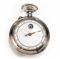 Cassa in argento liscio con corona di carica a ore 12, pulsante per la rimessa dell'ora a ore 11. Quadrante in smalto con anello dei minuti puntiforme e numeri arabi, apertura circolare per le ore a ore 12, lancetta sagomata. Movimento con scappamento ad ancora con sistema Roskopf. Diam. mm 53