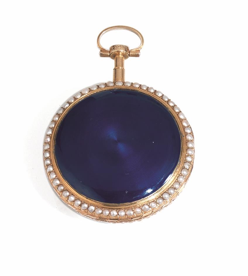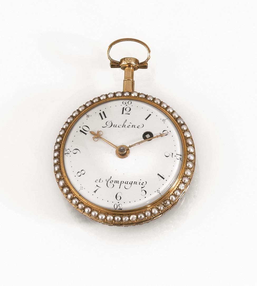 OROLOGIO DA TASCA DUCHENE ET COMPAGNIE, N. 25238, FRANCIA, 1775 CIRCA, IN ORO GIALLO 18 KT, SMALTO E PERLE