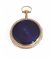Cassa in oro giallo interamente decorata in smalto blu e profilata in perle sia sul fronte che sul retro, anello a ore 12. Quadrante in smalto bianco con numeri arabi, lancette ad ago e traforata, apertura per la carica a ore 2. Movimento con scappamento a verga. Diam. mm 44