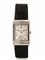 cassa rettangolare reversibile, anse inclinate, vetro zaffiro. Quadrante argentè con grandi indici a punta di freccia oro applicati e numero 12 in caratteri arabi, lancette a spada oro, secondi a ore 6. Movimento a carica manuale. Cinturino in pelle con fibbia in metallo ad ardiglione non pertinente. Dim. mm 33x23