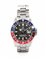 Cassa in tre corpi con fondello e corona a vite, lunetta girevole con 24 ore rosso blu. Quadrante nero con indici puntiformi e a bastone in materiale luminescente, lancette mercedes, secondi e lancetta per fuso orario al centro, datario a ore 3. Movimento a carica automatica calibro 1530. Bracciale a maglie Oyster con chiusura deployante Rolex. Diam. mm 40