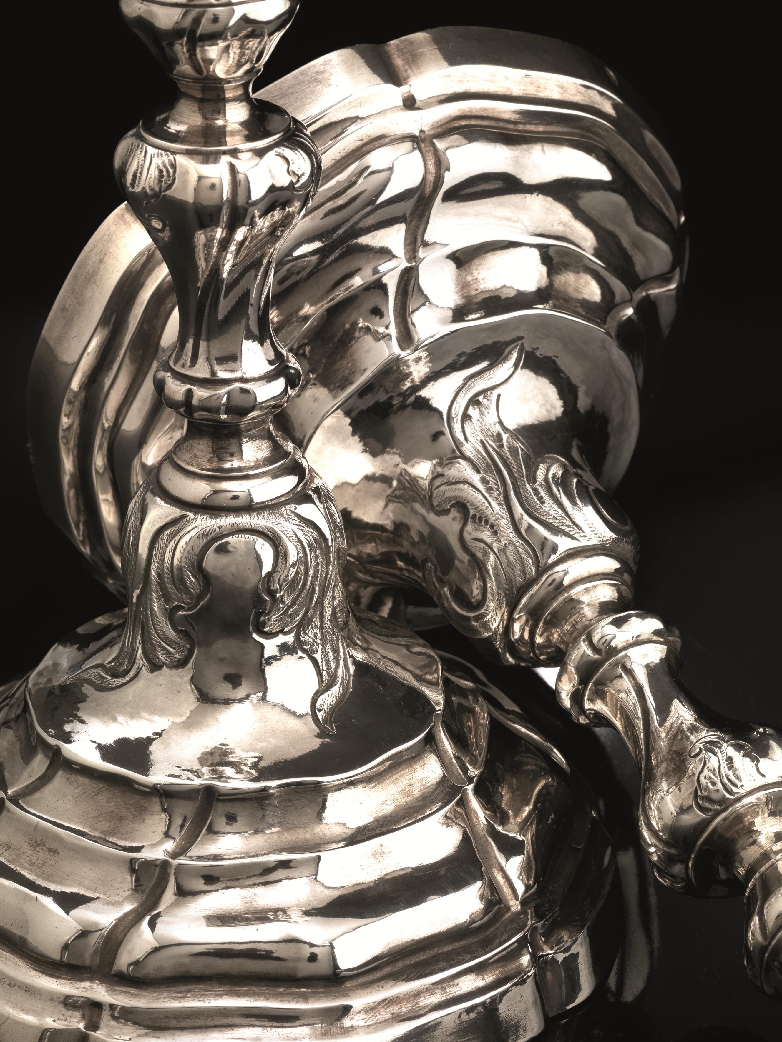 COPPIA DI CANDELIERI, MILANO, METÀ SEC. XVIII, BOTTEGA ALL’INSEGNA DEL CUORE...