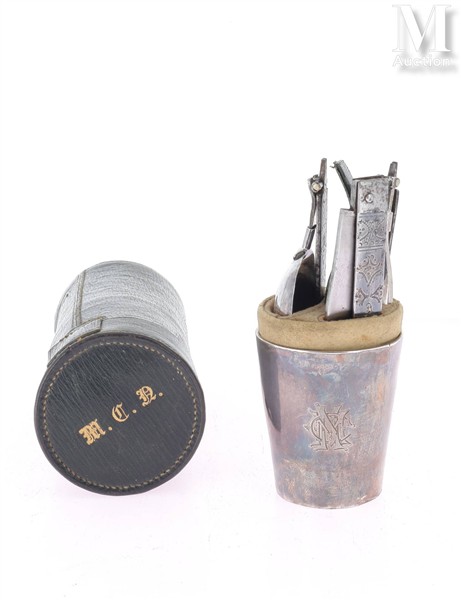 On y joint une timbale en argent anglais et intérieur en vermeil.