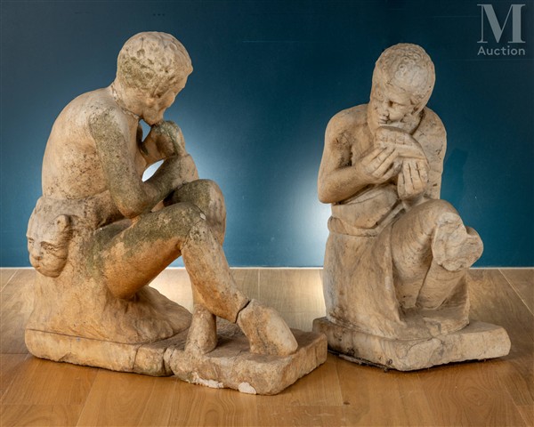 Deux sculptures de jardin Deux sculptures de jardin figurant deux faunes...