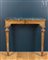 Legno modanato, intagliato e dorato, decorato con fregi di perle entro fascia centrata con motivo a fogliami e sostenuto da greche. Gambe affusolate a sezione rotonda, scanalate, irruvidite, e fogliame, sormontate da un rigonfiamento decorato con un fregio floreale e sormontato da foglie di acanto.