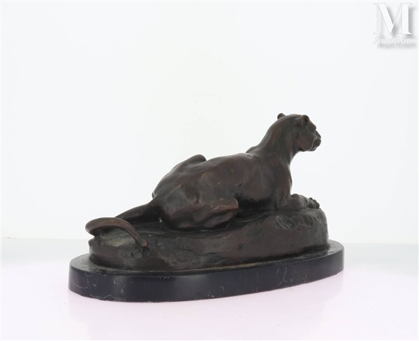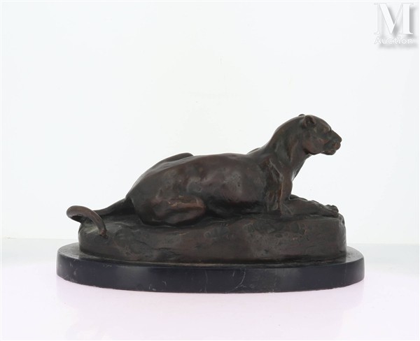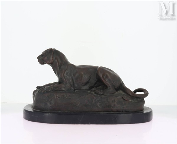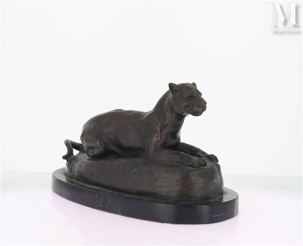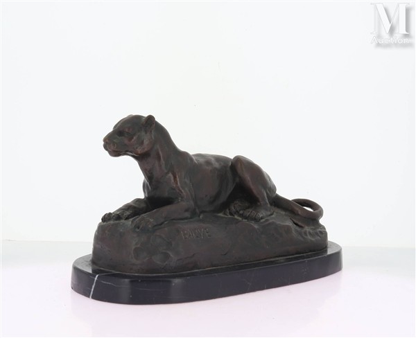 Antoine-Louis BARYE, d'après Lionne au repos Bronze à patine brune Signé en...