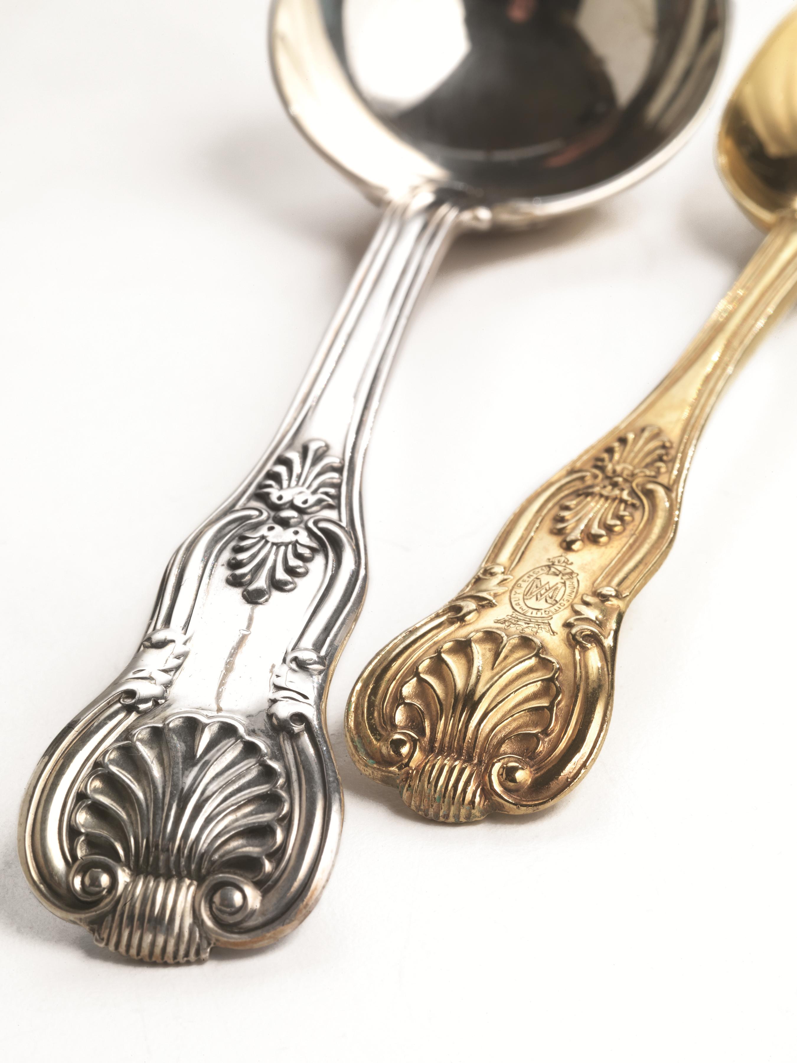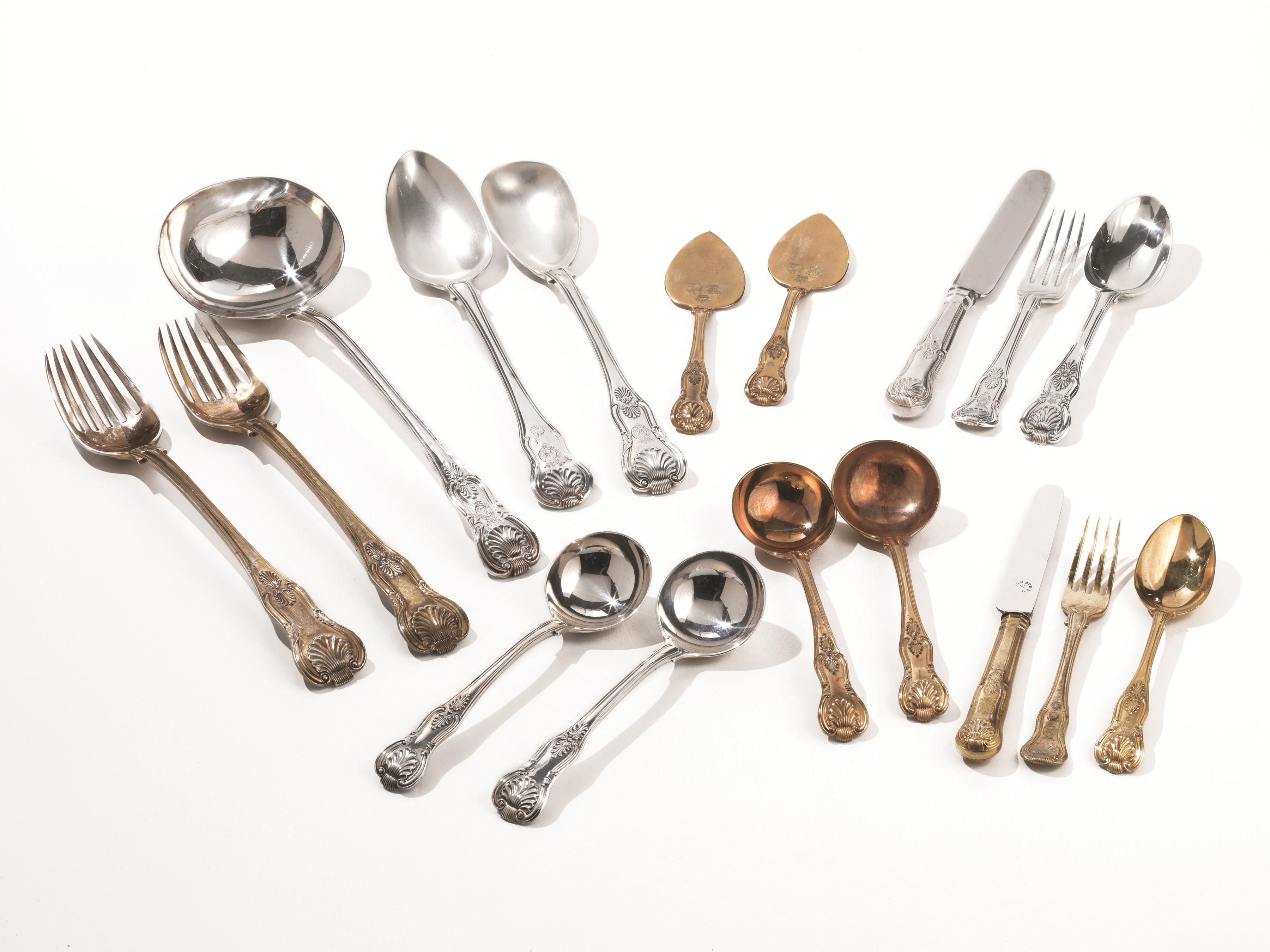 In argento e vermeil, manici decorati da conchiglie, composto di centonovantuno pezzi, g 11690 (191)