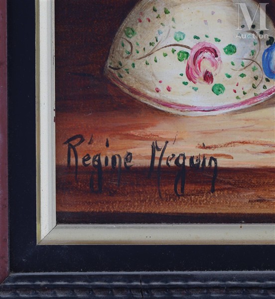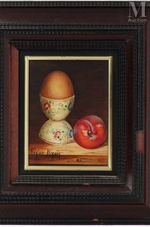 Régine MÉGUIN (1938) L'oeuf à la coque Huile sur toile Signée en bas à gauche...