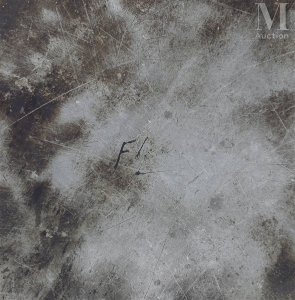 Fernand GRANGE (XX) Plat circulaire creux en dinanderie à décor géométrique...