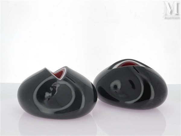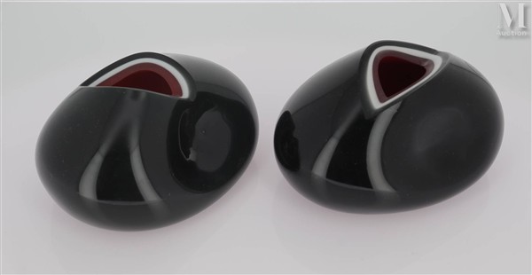 SALVIATI Paire de vases en verre de Murano overlay à col pincé. Modèlé...