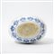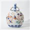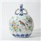 The round body decorated in under-glaze blue, green enamel and iron red blossoming trees and birds.