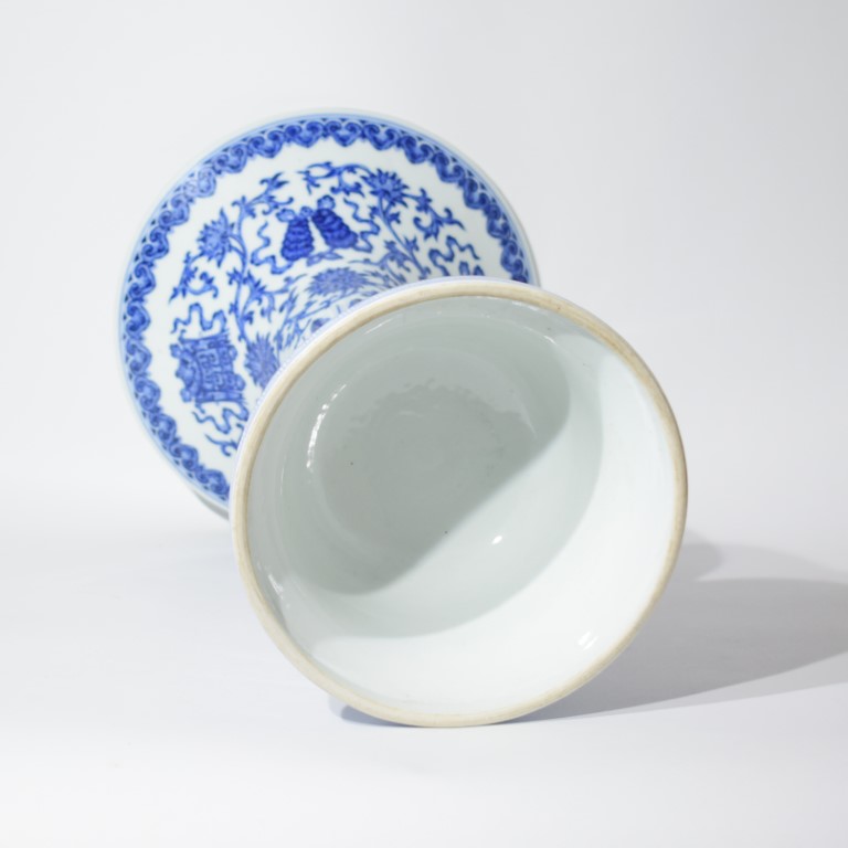 Heavy potted porcelain vase decorated with lotus scrolls and height Buddhist symbol. At the base of the neck linear Zuanshu mark of Qianlong.
