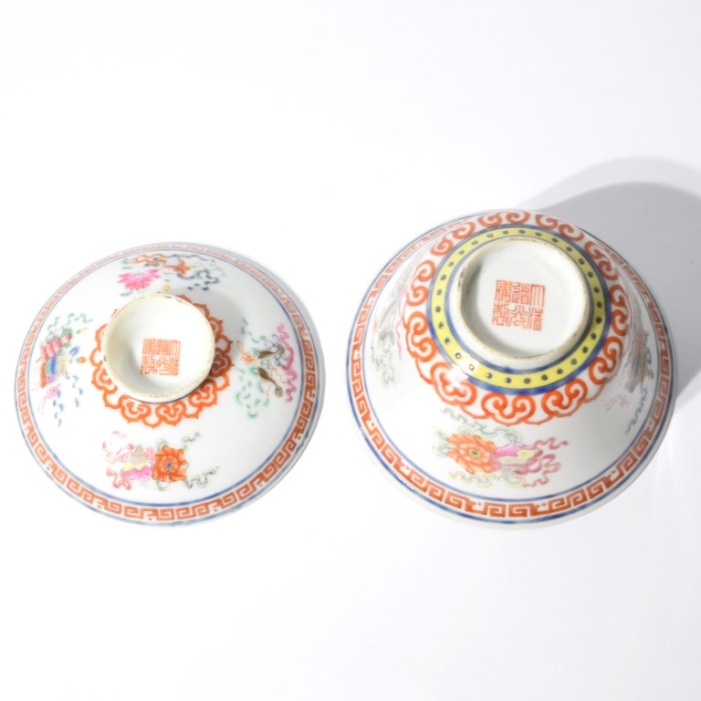 Bell shaped tea cup decorated with Buddhist symbols. Both lid and bottom of the bowl with iron red seal mark of Daoguang.