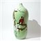 Large heavy potted pumpkin shaped vase, decorated with blossoming trees and red parrot. On the bottom black signature.
