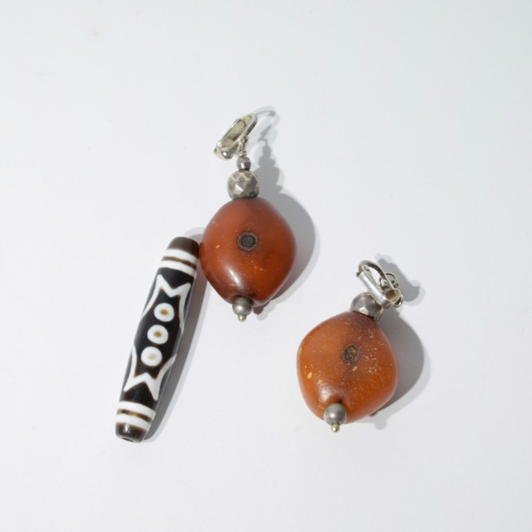 A Tibetan Dzi and two earrings