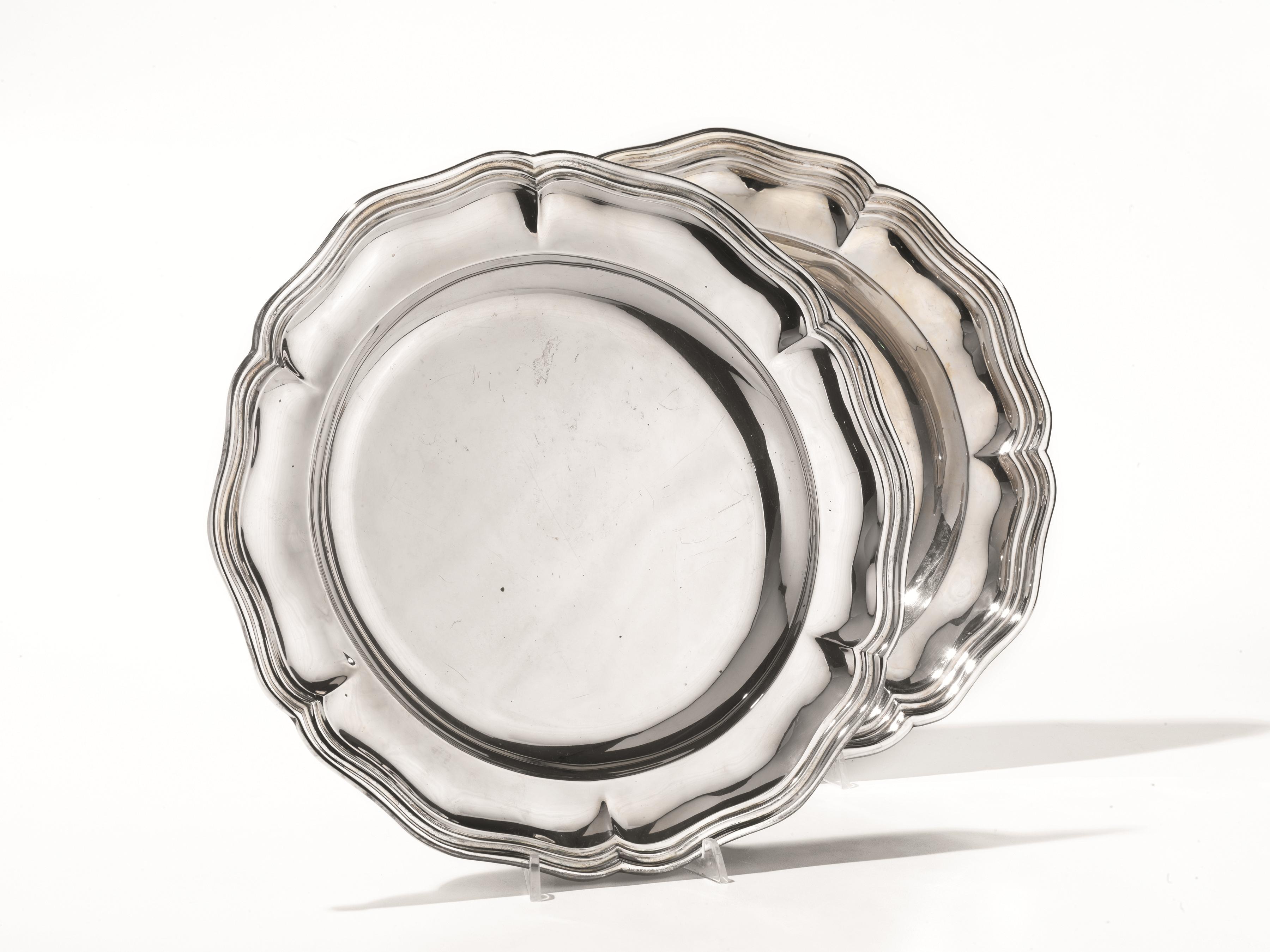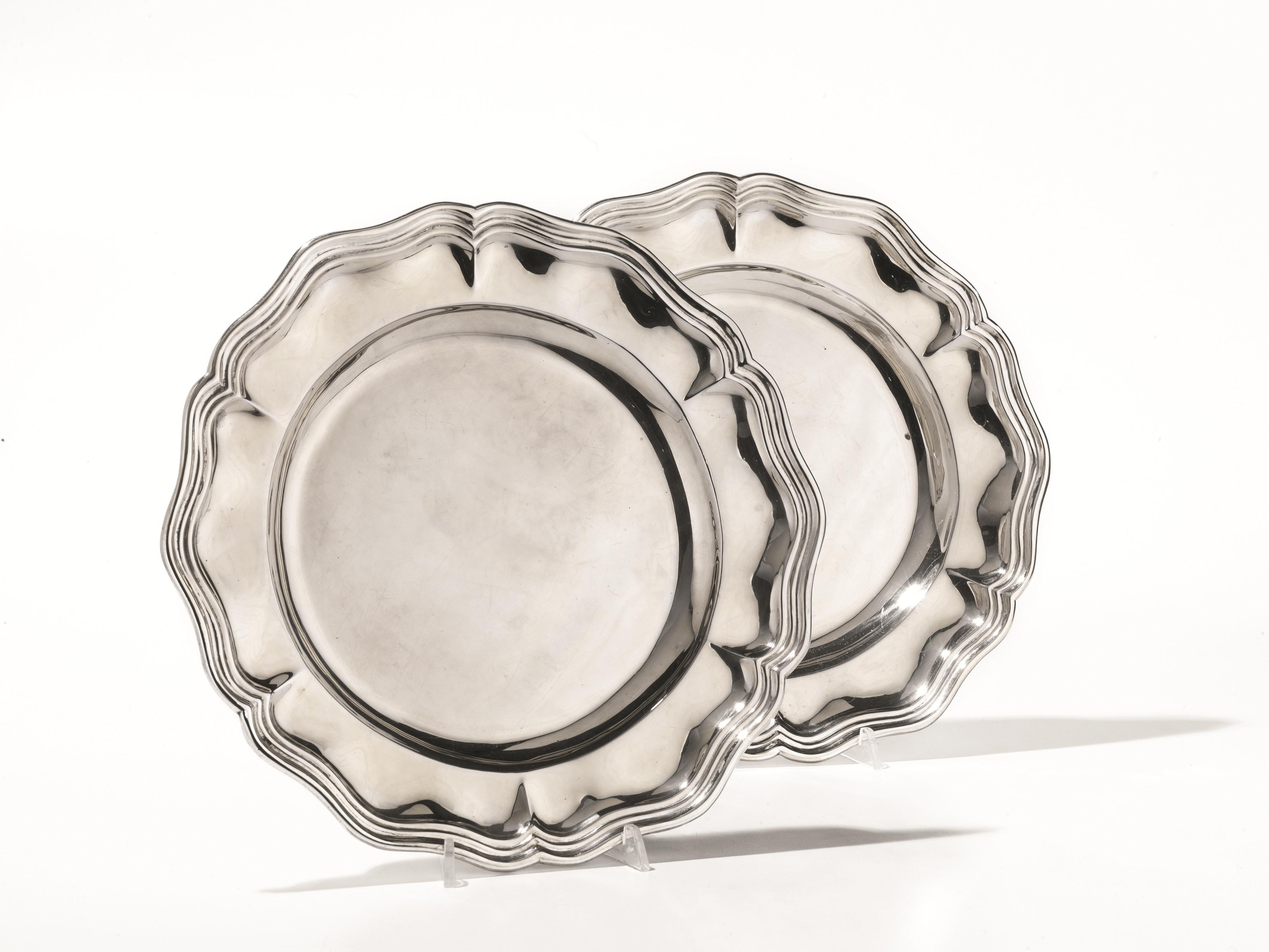 DUE COPPIE DI VASSOI, SEC. XXin argento di forma circolare sagomata, diam. cm...