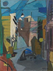 Afro Udine 1912 - Zurigo 1976 Notturno cittadino, 1947 Olio su tela, cm. 39,8x29,7 Firma e data in basso a destra: Afro 47. Certificato su foto Archivio Afro, Roma 17/2/94, con n. 47/11. Bibliografia: Mario Graziani, Barbara Drudi, Alessia Gubbiotti, Catalogo generale ragionato dai documenti dell'Archivio Afro, Dataars, Roma, 1997, p. 75, n. 169.