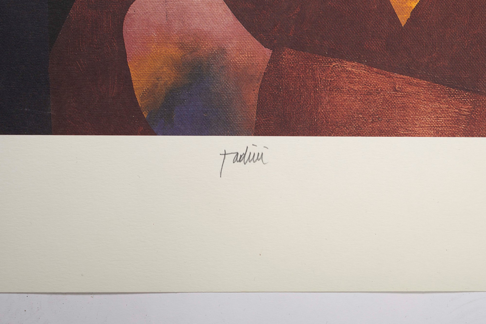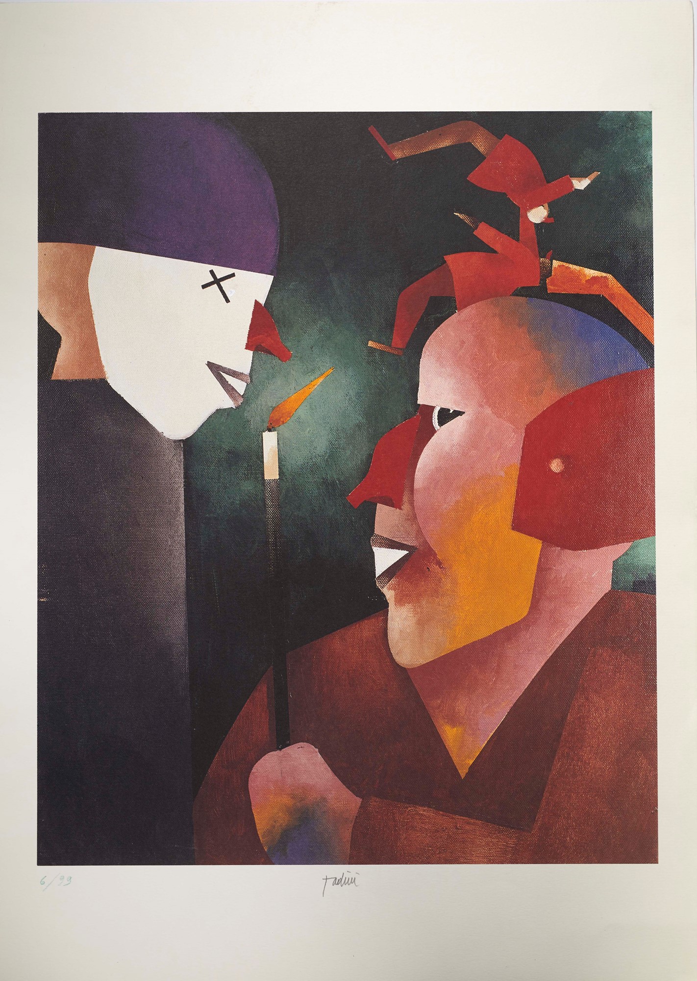 EMILIO TADINI (Milano 1927 – Milano 2002) “Senza titolo”. Litografia a colori su carta. Cm foglio: 70x50. Opera firmata in basso al centro Tadini. Reca numeri di tiratura in basso a sinistra 6/99.
