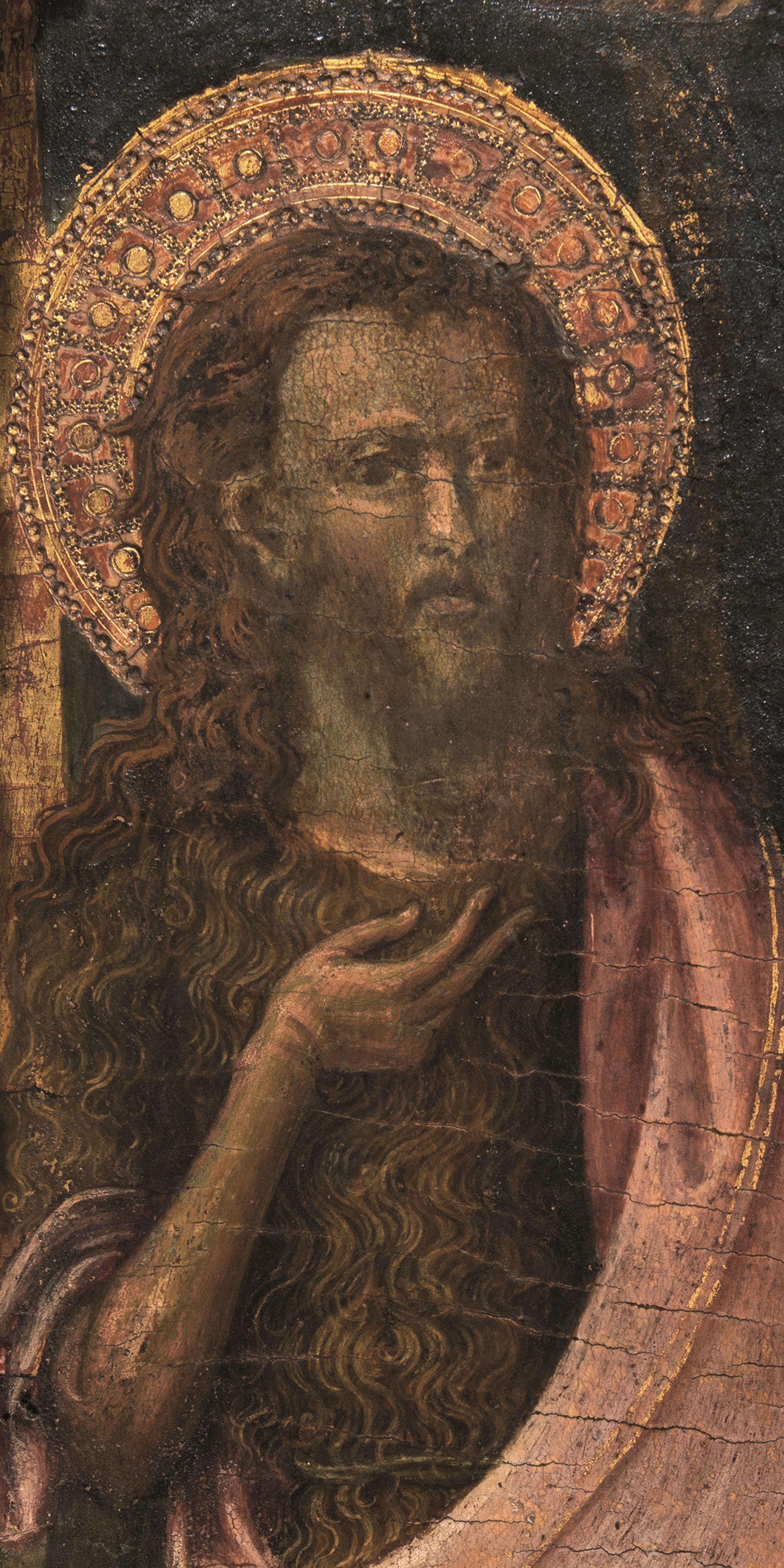 E' possibile cogliere taluni riscontri compositivi e nell'impostazione delle figure con la tavola raffigurante Madonna con Bambino, san Giacomo Maggiore, sant'Antonio Abate e sante del Musèe des Beaux-Arts di Digione e con quella conservata presso il santuario della Madonna delle Grazie al Sasso, Santa Brigida (Firenze), in particolare per la figura del San Giovanni Battista per cui si colgono ulteriori affinità con il polittico del Museo Beato Angelico di Vicchio, proveniente dalla chiesa di Santa Maria a Montefloscoli.