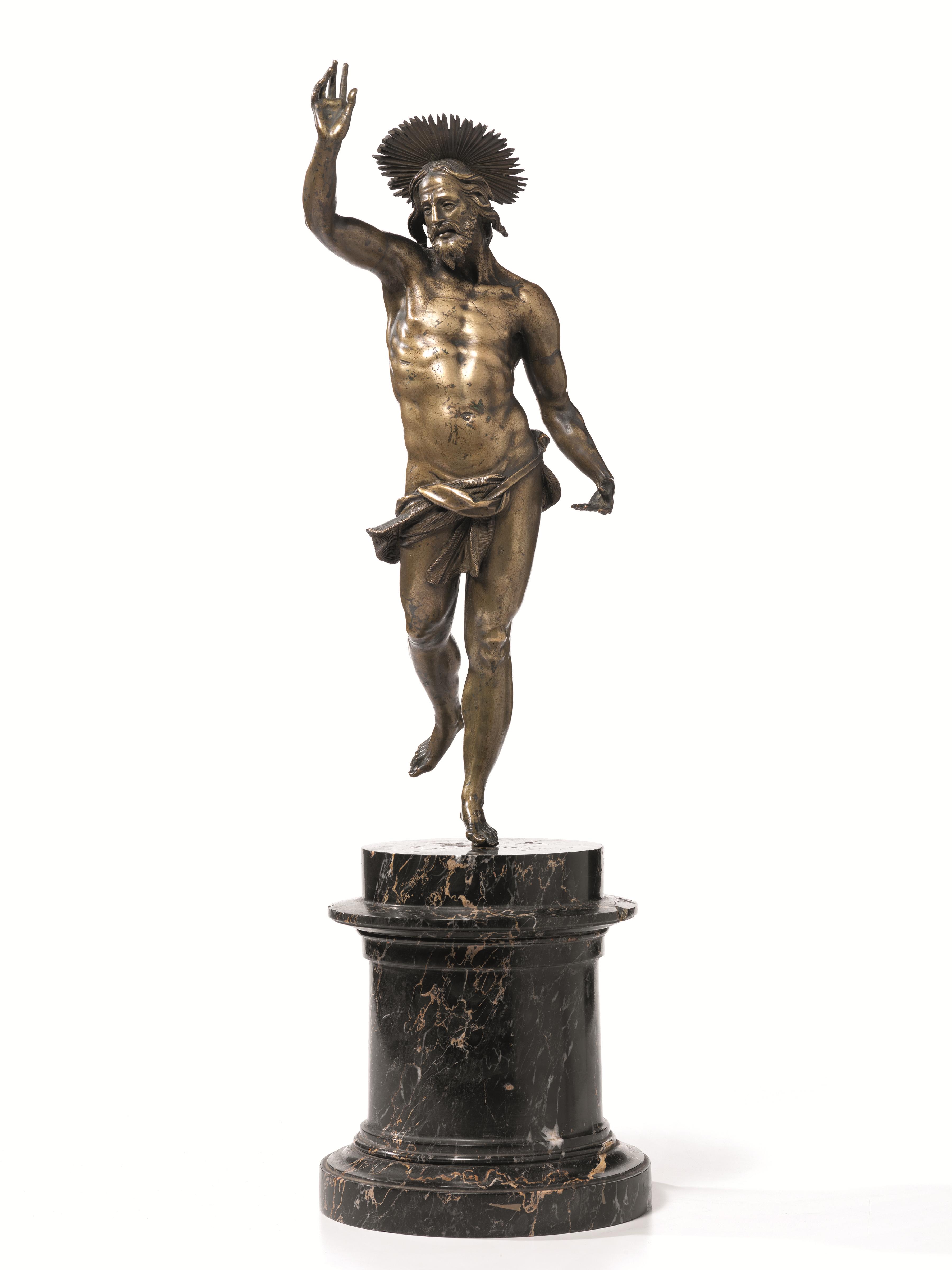 scultura in bronzo, alt. cm 41 su base moderna in marmo nero venato, alt. cm 20